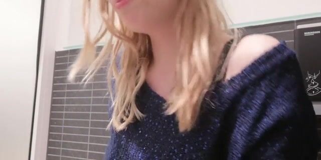 Sweet blonde lady with shaved pussy caught pissing