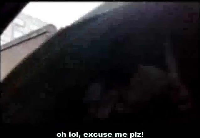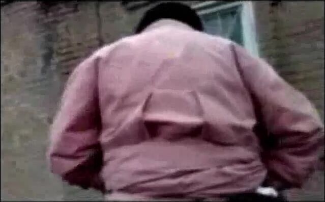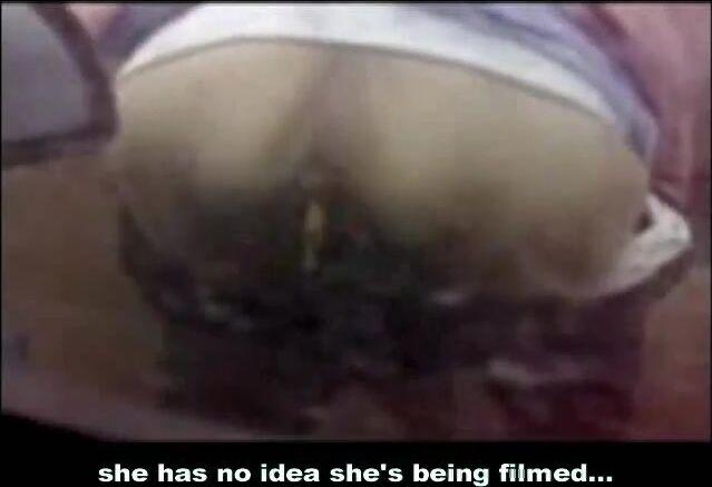 A chubby woman shits in her pants outside