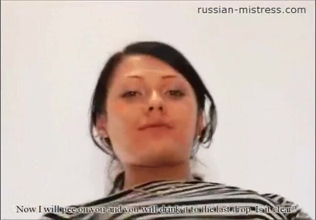 Russian mistress pissing on the slave