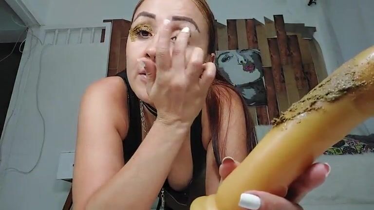 Seductive babe Sara ass toying with huge dildo