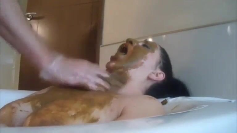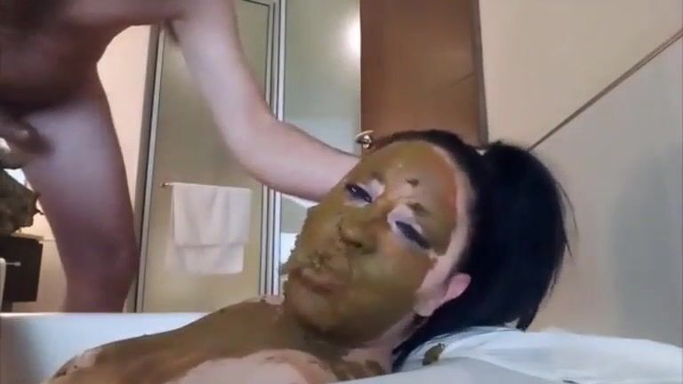 Slutty brunette bitch eating shit and cock