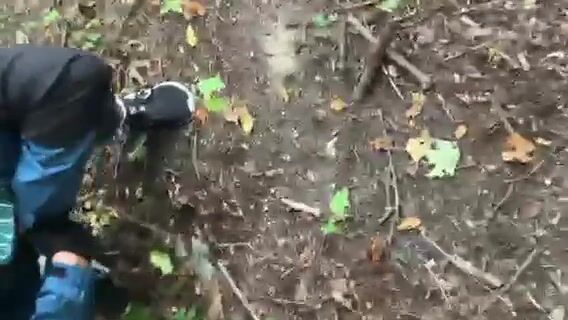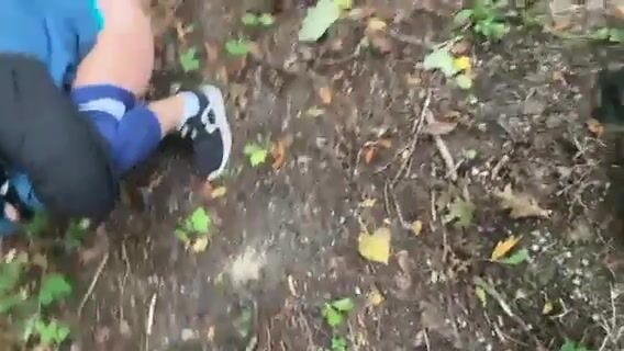 Solo girl doing some peeing in the forest