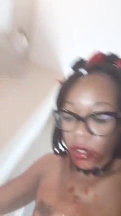 Fat black pussy lady shitting nicely