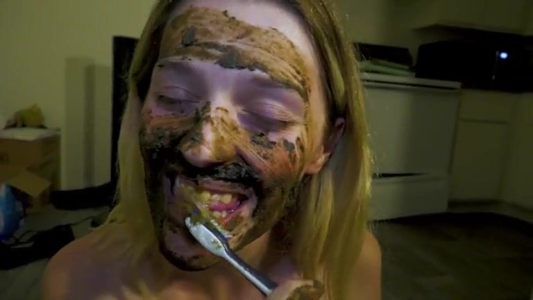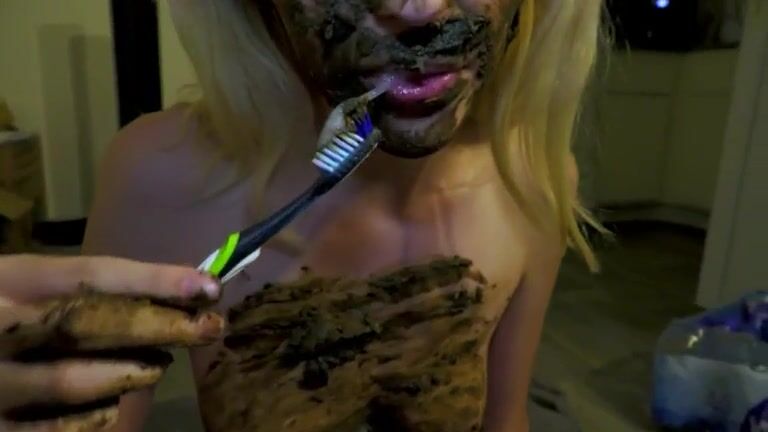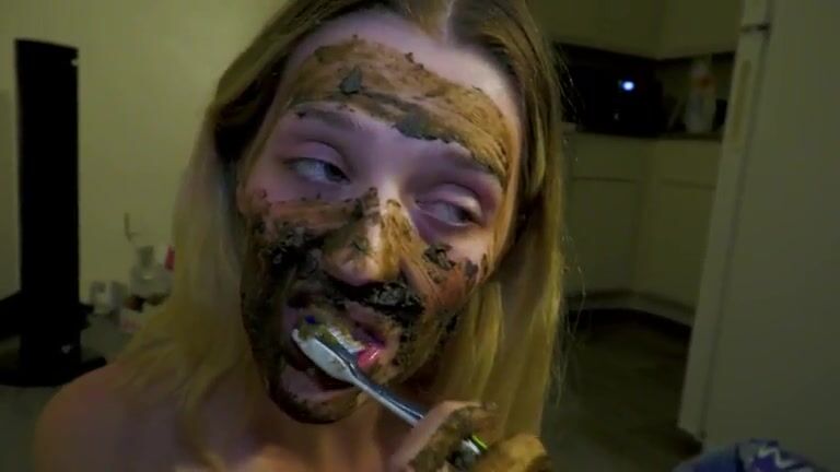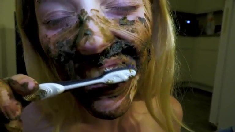 Brushing her teeth with scat