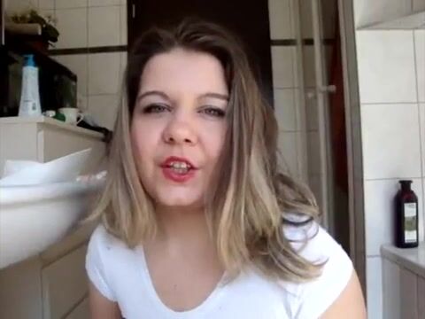 Girl with red nails pissing while playing with poop