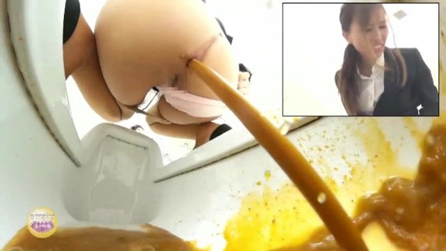 Girl takes a dump in a public restroom toilet then plays with her shit