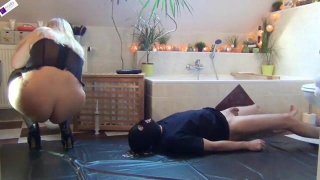 Slut pisses on slave