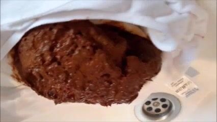 Shitting a thick load on her white panty