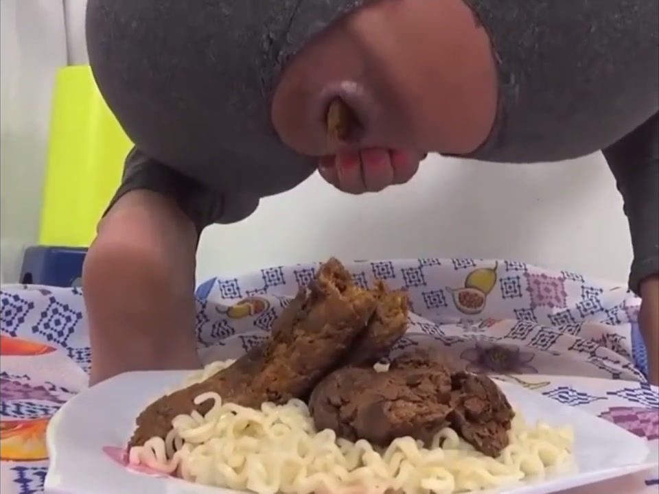 Scat fetish babe pooping in the rice plate