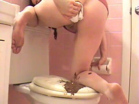 Slutty white ass chick pooping in the toilet