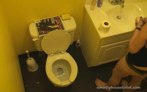 Sexy brunette lady caught pooping in the toilet