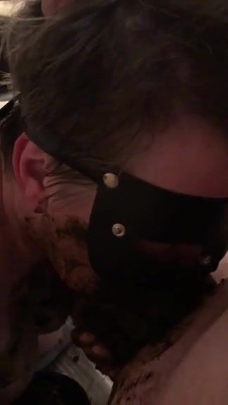 Chubby wife in mask gives hot scat blowjob