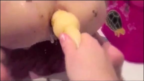 Anal insertion with thick dildo and poop