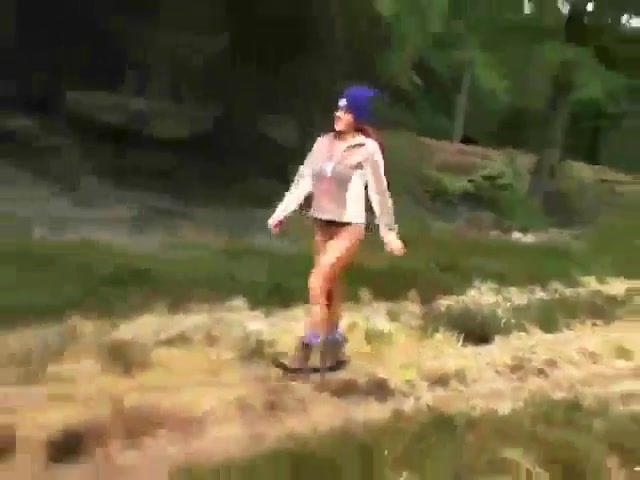 Girl with a pierced clit pooping on the slide