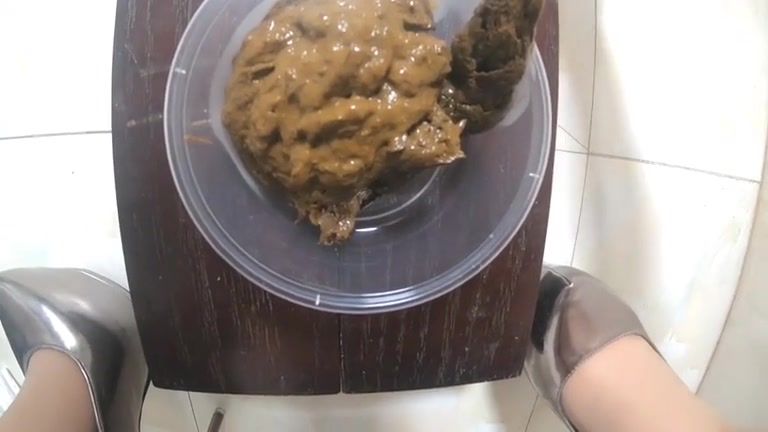 Lovely Chinese scat babe fills bowl with huge poop