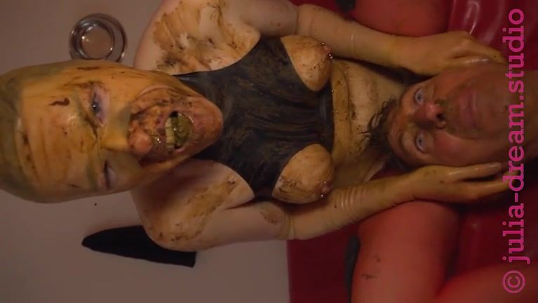 Scat bitch smearing and pooping on her slave