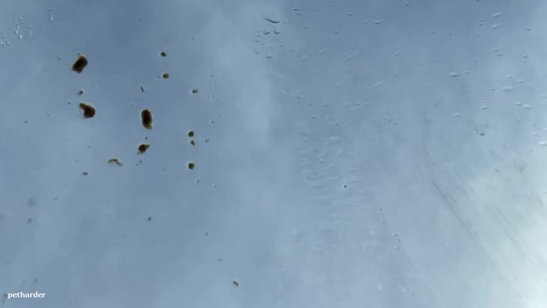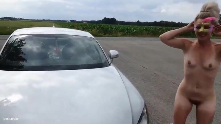 Skinny naked girl pooping on the car windshield