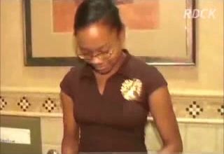 Ebony babe with glasses love poop show