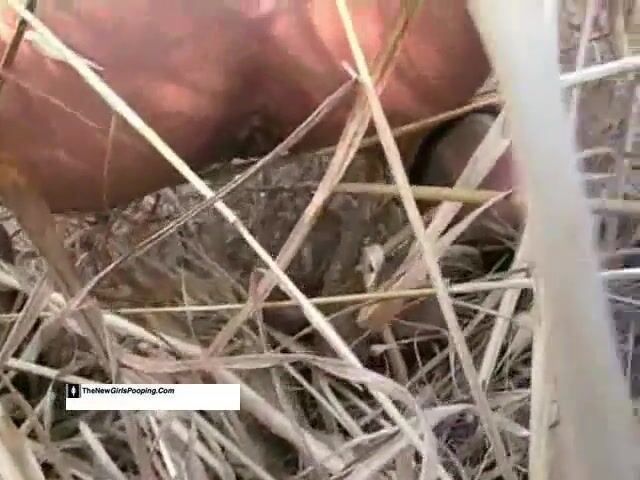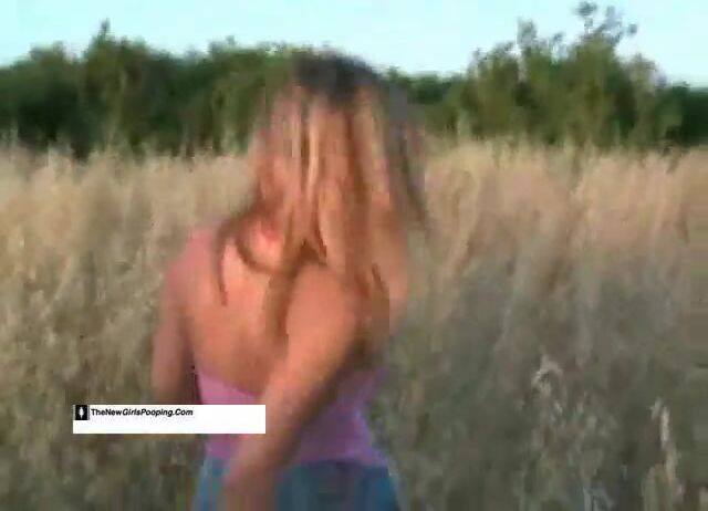 Blonde hot chick pooping in the grass