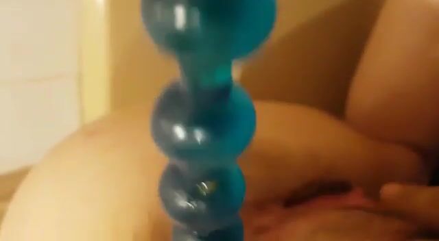Lady masturbates and poops on her anal beads