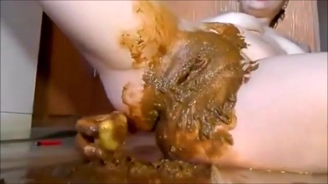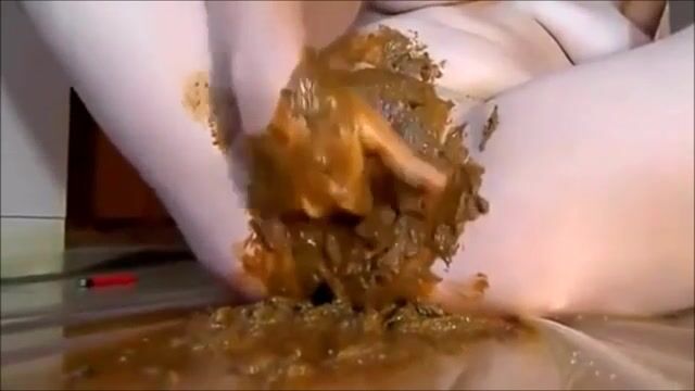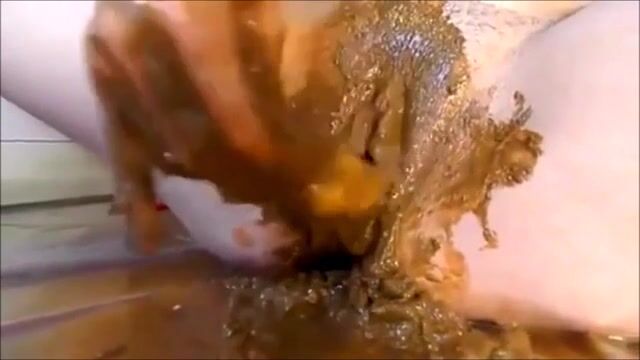 Woman pisses on the floor and makes a mess with her feet