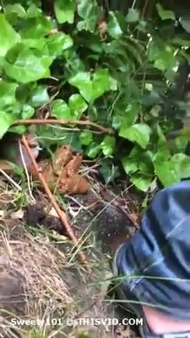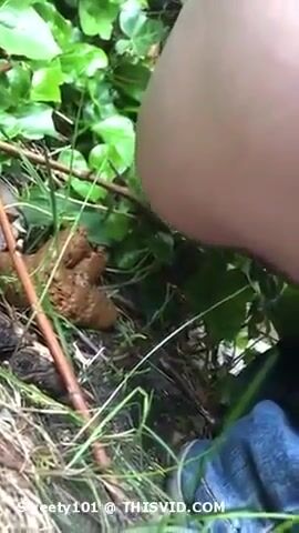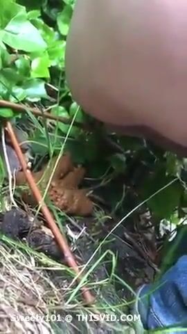Young lady shitting in the forest