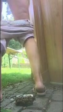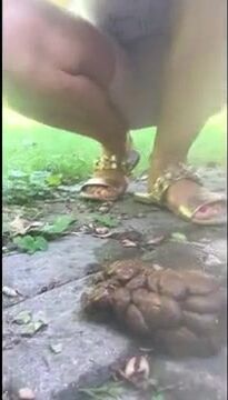 Asian girl poops heavily in the park
