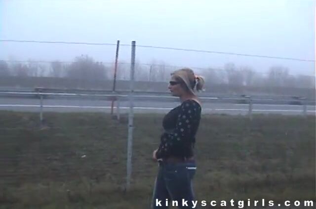 Mature blonde wife pooping in the public