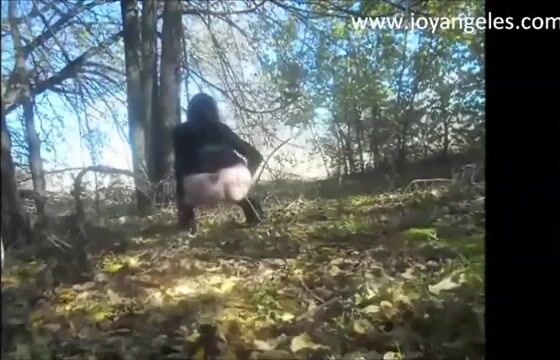 Sexy big bottom lady pooping in the forest