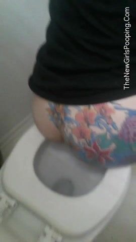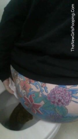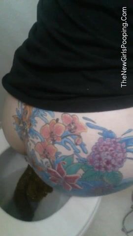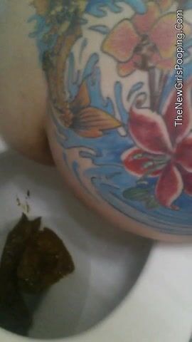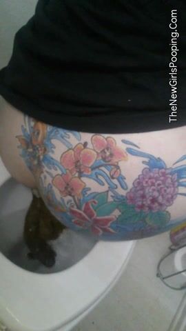 Tattooed pooping babe