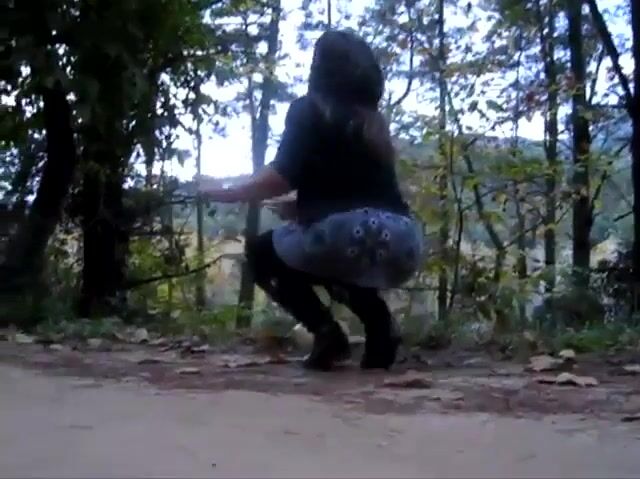 Two hot babes pooping in the woods