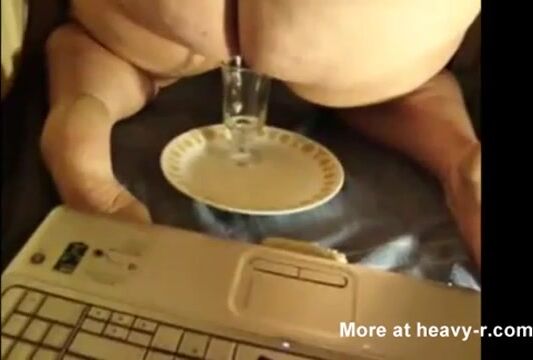 Mature fat lady drinking piss and eating shit