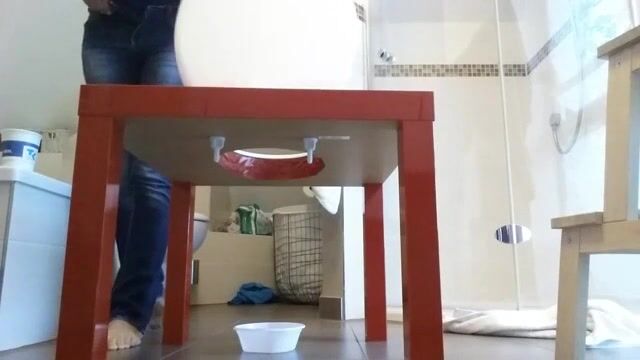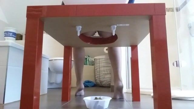 Hole in table for poop