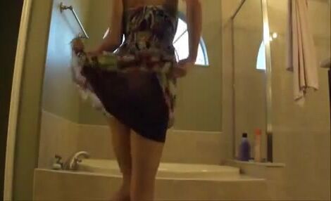 Lady poops hard in her white panty