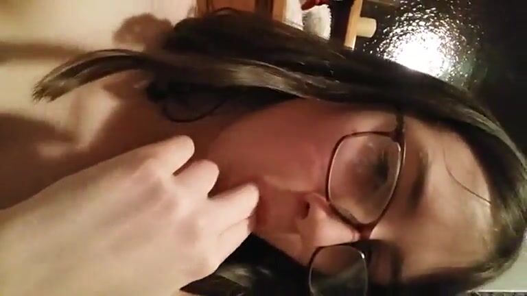 Nerdy busty brunette babe eating shit