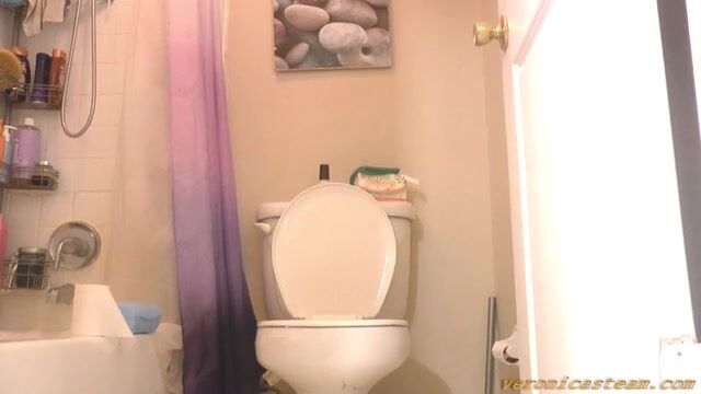 Fatty brunette girl pooping