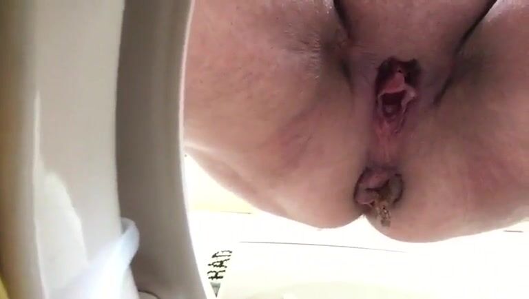 Chubby shaved pussy lady piss and poo pov