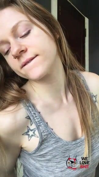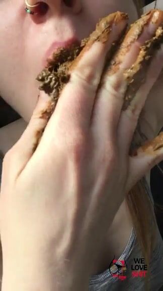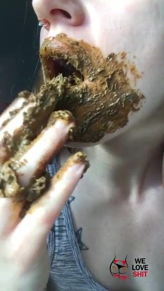 Stunning brunette teen girl licking shit