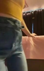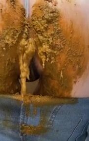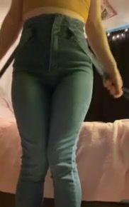 Cute girl pooping in her sexy Jeans
