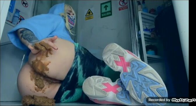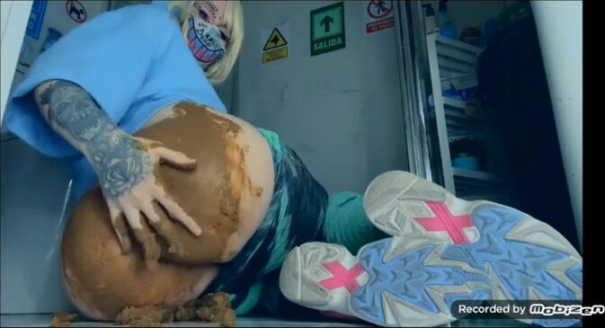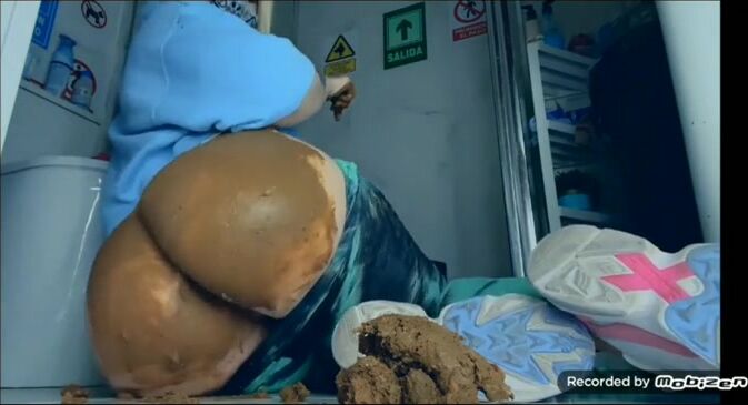 She shits on the floor and rubs it all over her legs