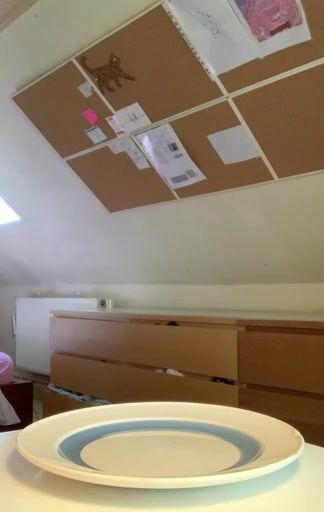 Chick with seductive body pooping on the plate