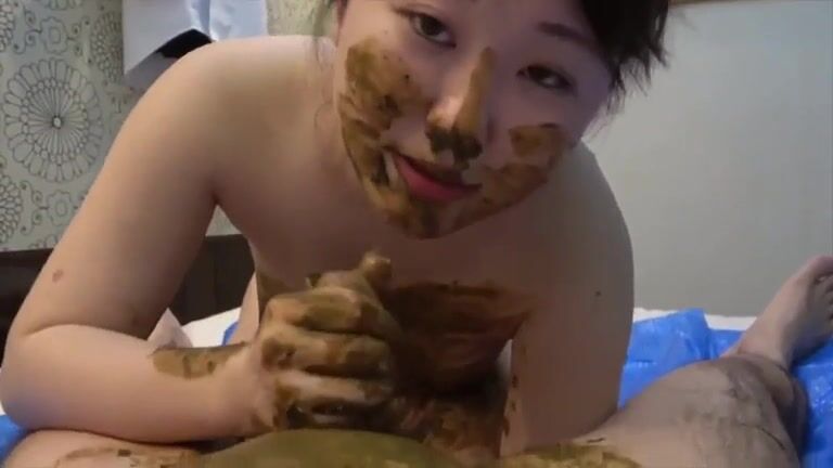 Sweet Asian girlfriend gives scat blowjob