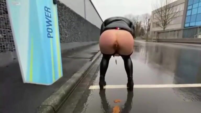 Mouth watering milf poops on the rainy day