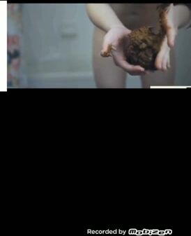 Catching her poop in her hands