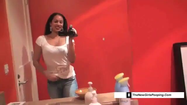 Seductive busty girl pooping