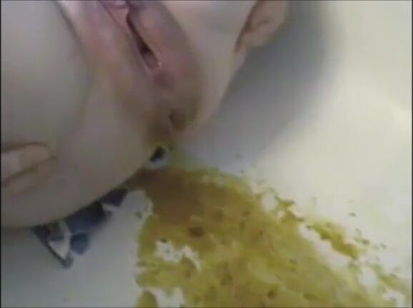 Woman shitting liquid poop after enema