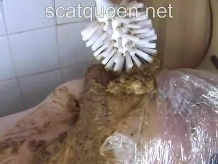 Dirty milf pooping on her poor slave