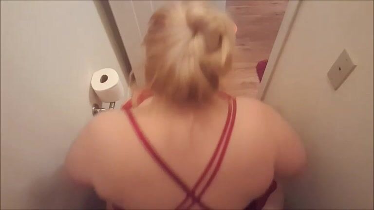 Cheeky chubby lady poops in the toilet