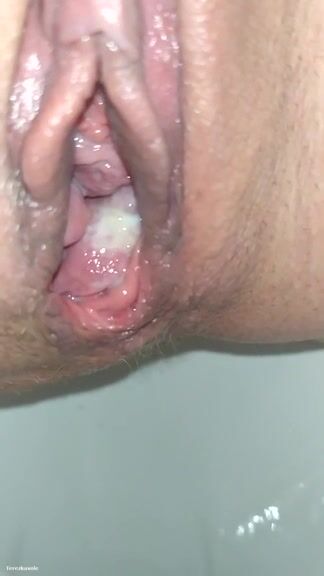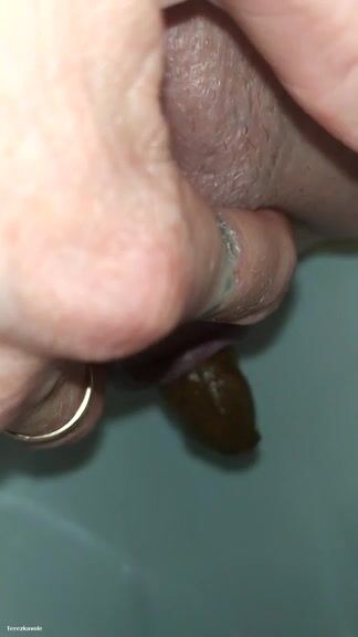 Creampie filled lady poops in closeup