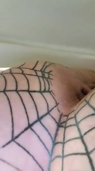 Girl spreads her ass in a fishnet stocking